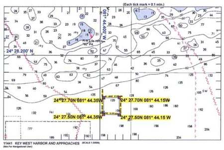 This chart shows the latitude and longitude of the Vandenberg site at 24.27N, 81.44W